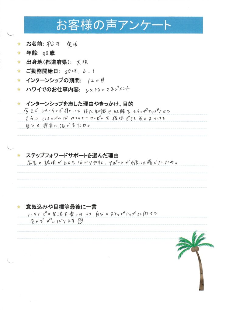 ハワイでの生活を楽しみつつ 自分のステップアップに向けて