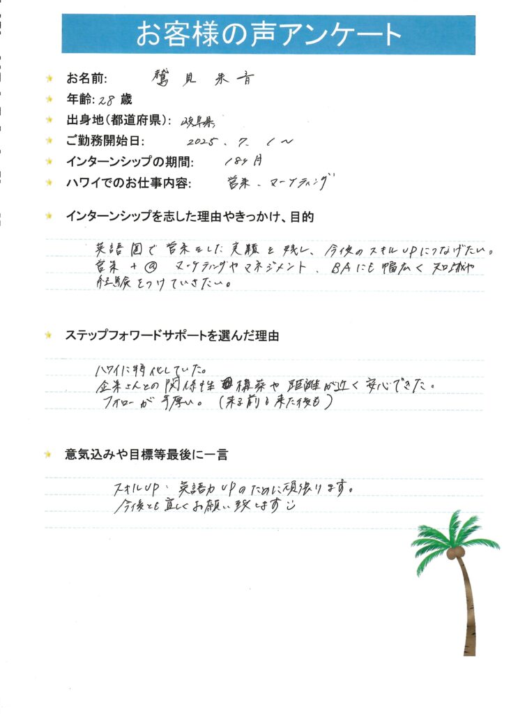 ハワイの企業と面接をされたかと思いますが、面接をされた率直な感想はいかがでしたか?
