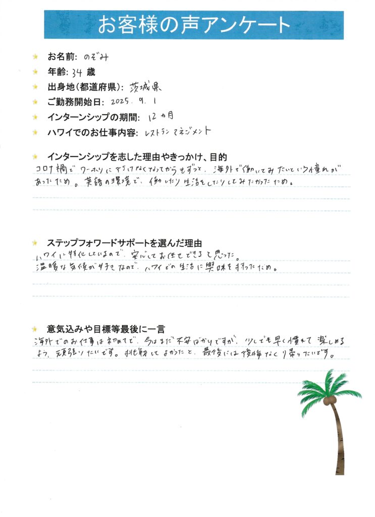 ハワイで働きたいと思ったきっかけはなんですか?