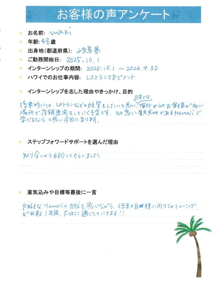 ハワイで働きたいと思ったきっかけはなんですか?