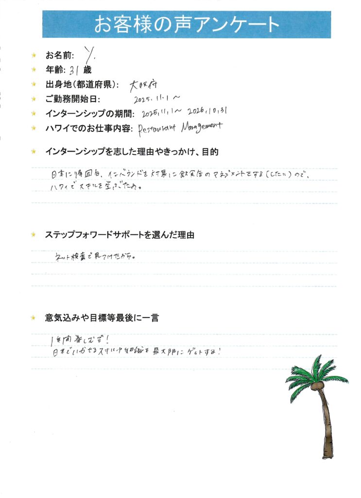 ハワイ働くという選択肢現実ことが、今回挑戦しようきっかけです。