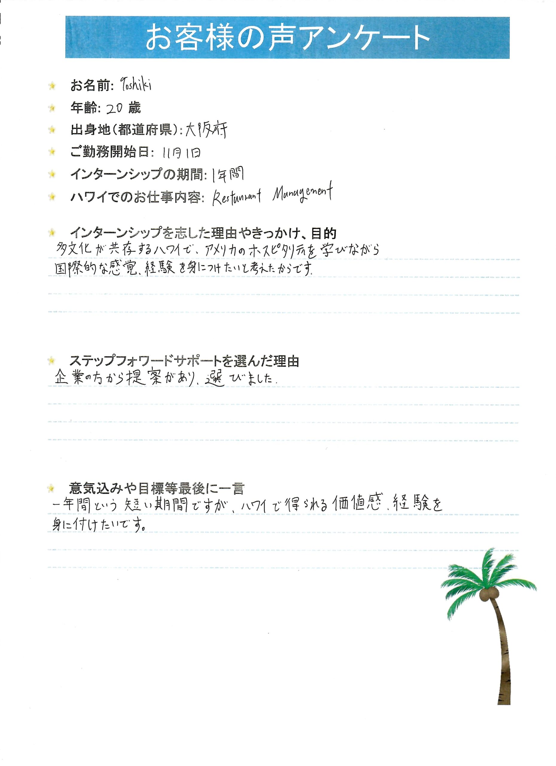 お名前:Toshikiさん
