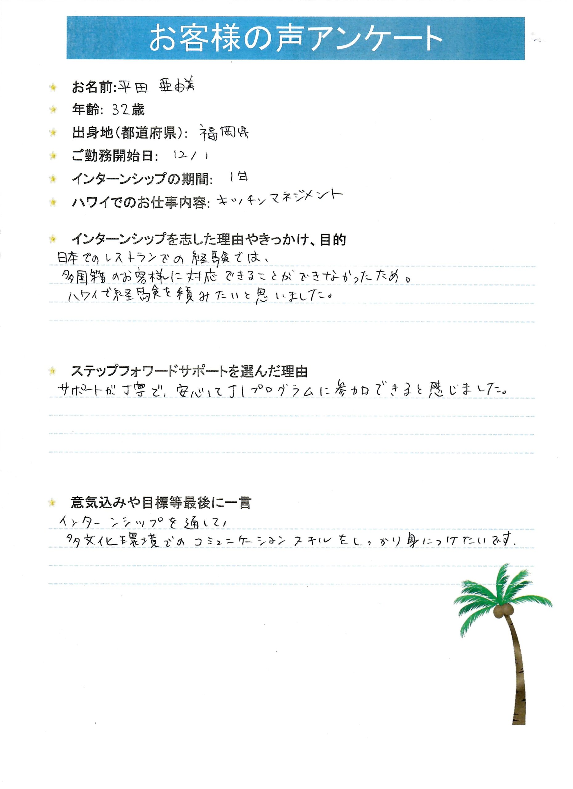 ハワイで経験を積みたいと思いました。